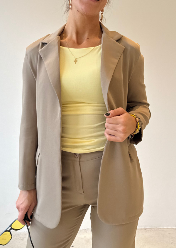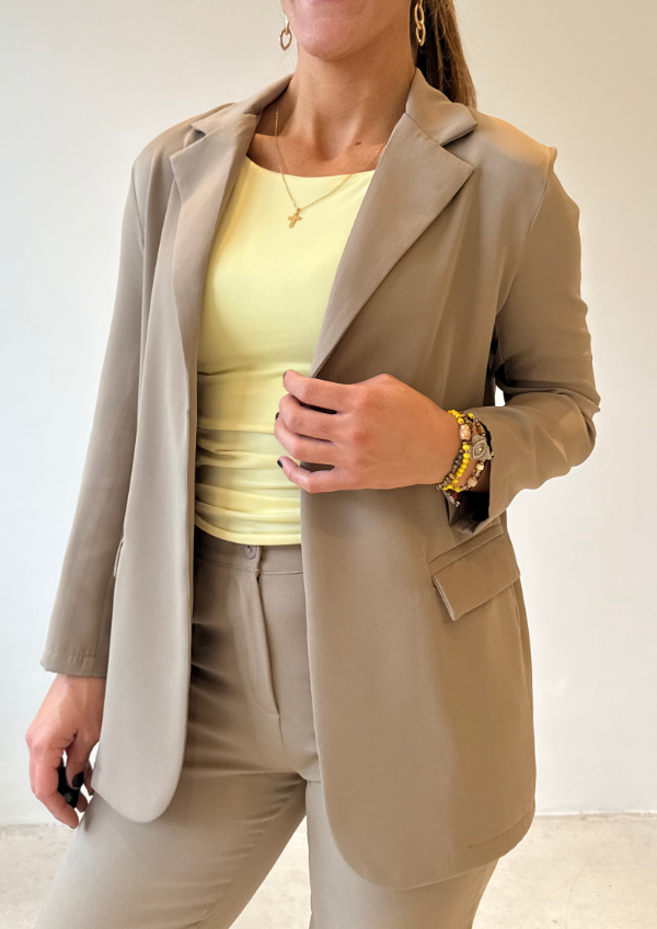 • Blazer sastrero, largo, con bolsillos. Cuenta con hombreras para un mejor calce.