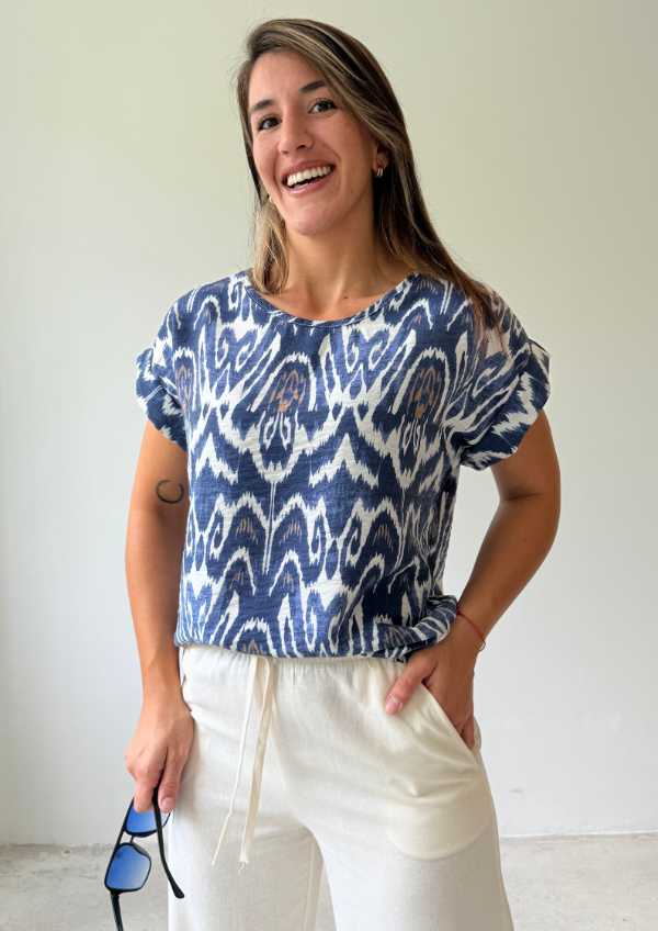 • Blusa amplia con ruedo ancho. En su manga cuenta con un ruedo como detalle.