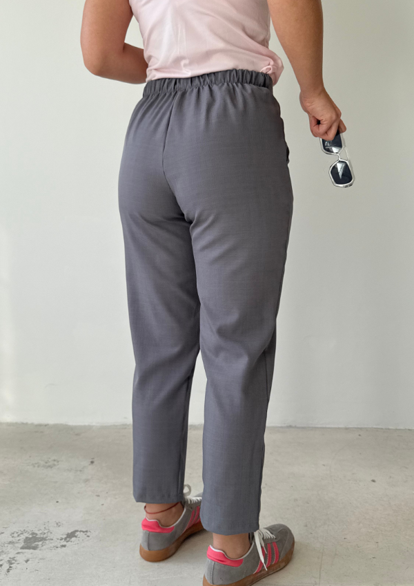• Pantalón sastrero, tiro alto. Cuenta con cierre, botón & presillas para cinturón. En la parte trasera, la cintura tiene elástico para un mejor calce, comodidad y amplitud de la prenda.