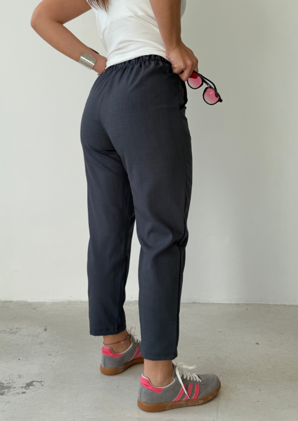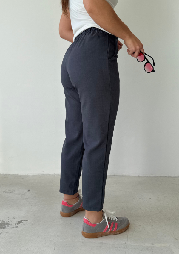 • Pantalón sastrero, tiro alto. Cuenta con cierre, botón & presillas para cinturón. En la parte trasera, la cintura tiene elástico para un mejor calce, comodidad y amplitud de la prenda.