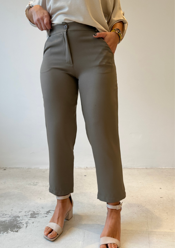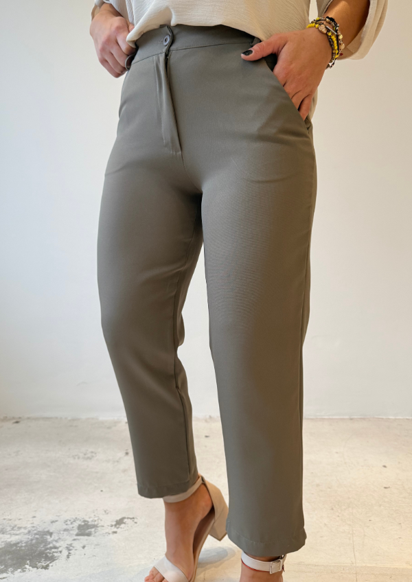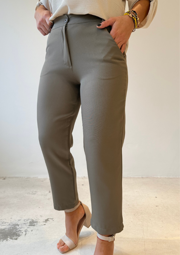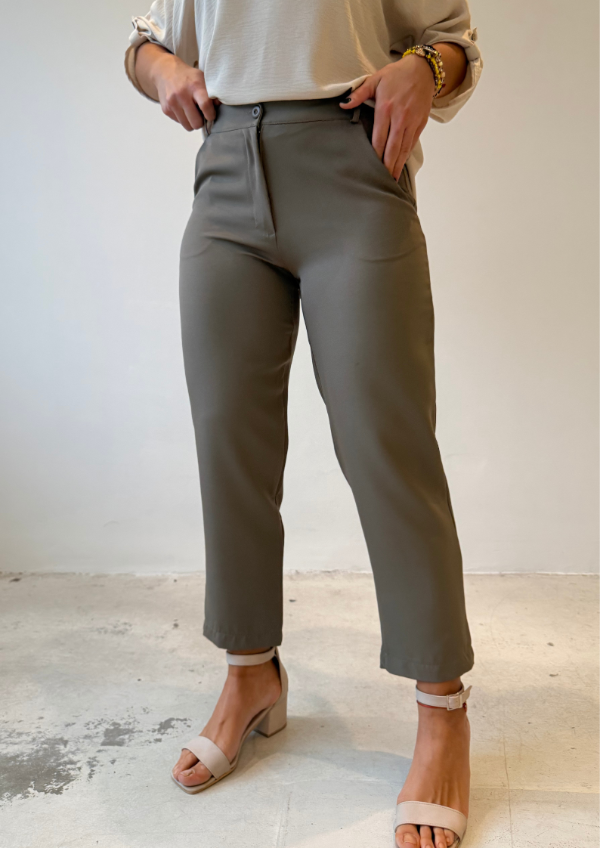 • Pantalón sastrero, tiro alto. Cuenta con cierre, botón & presillas para cinturón. En la parte trasera, la cintura tiene elástico para un mejor calce, comodidad y amplitud de la prenda.