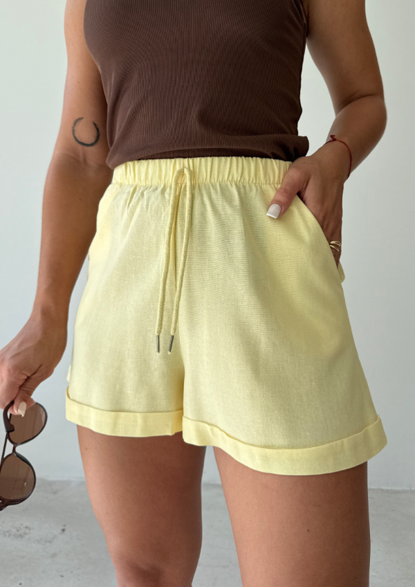 • Short amplio con elastico alrededor de todo el contorno de la cintura. Cuenta con bolsillos. Ruedo como detalle de la pierna para estilizar.