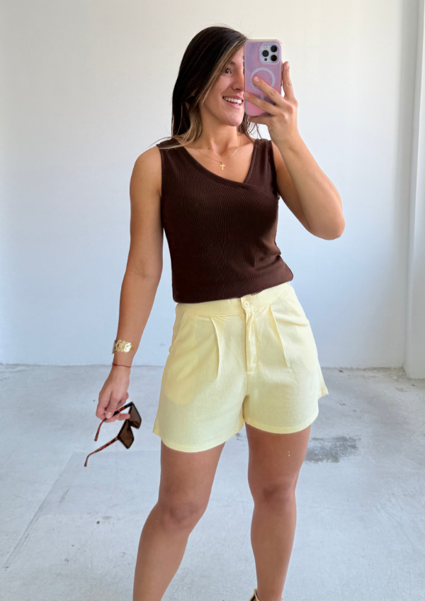 • Short sastrero, pinzado, con cierre y boton al tono. Elástico en la parte trasera para mayor amplitud.
