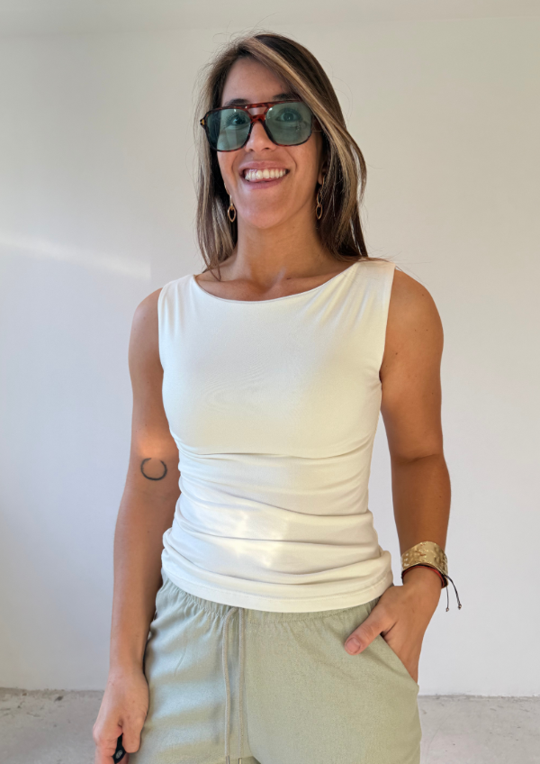 • Remera musculosa, escote bote alto, forrado en la delantera, super elastizada.