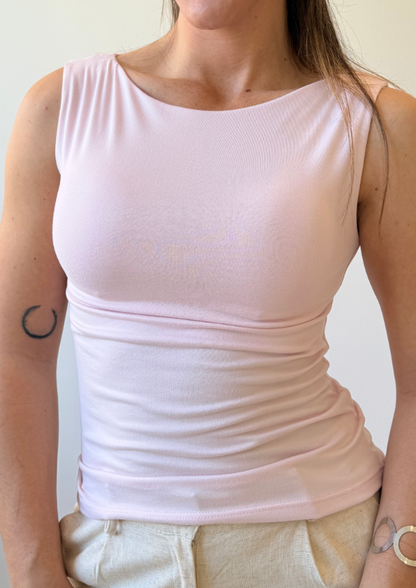 • Remera musculosa, escote bote alto, forrado en la delantera, super elastizada.