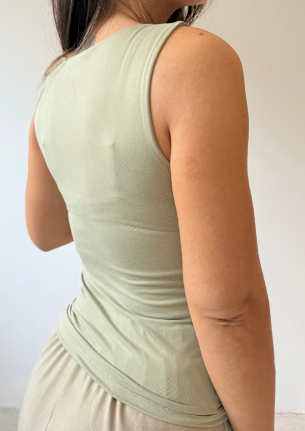 • Remera musculosa, escote bote alto, forrado en la delantera, super elastizada.