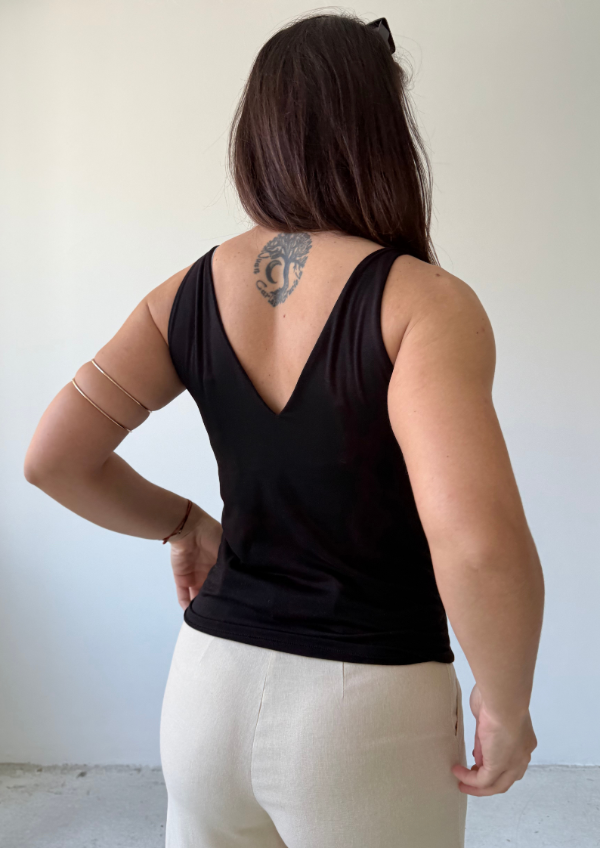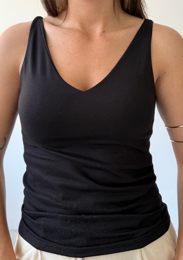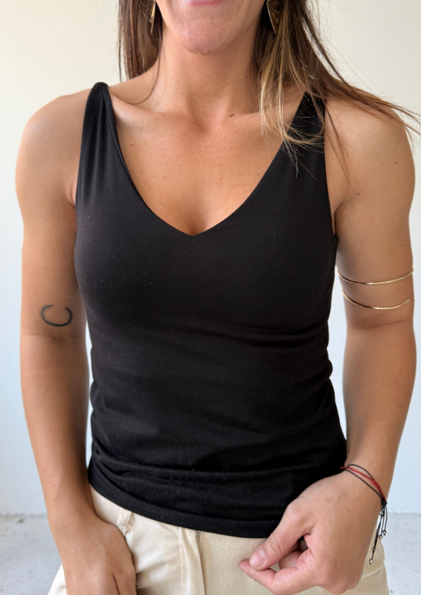 • Remera musculosa, escote en V, forrado en la delantera, super elastizada.