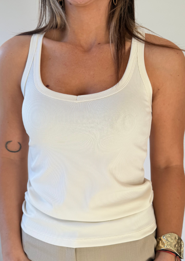 • Remera musculosa, super elastizada, con vivo ancho, escote cuadrado con pico.