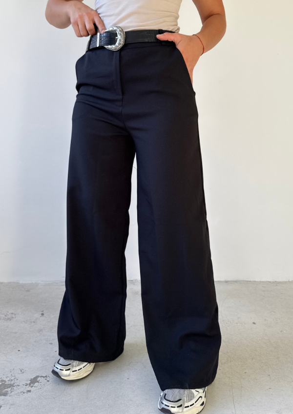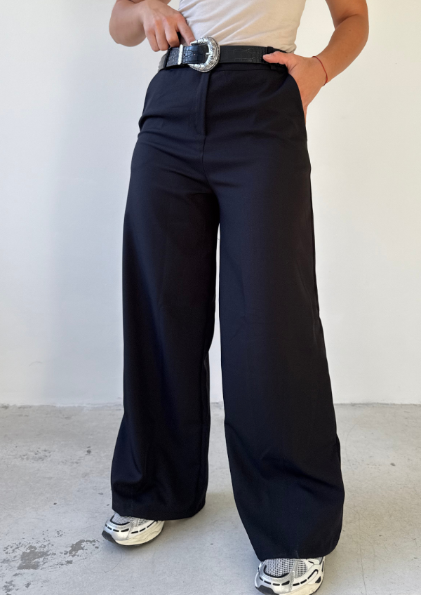 • Pantalón recto sastrero, largo al piso, con bolsillo, boton, cierre y presillas de cinturón. Es tiro alto cuenta con pinzas en la parte trasera para un mejor calce.