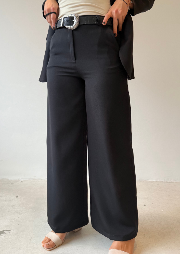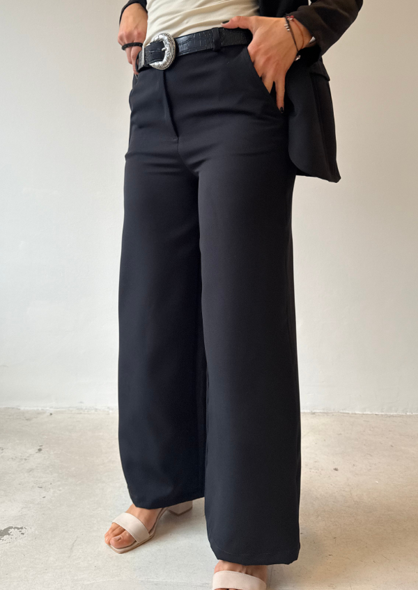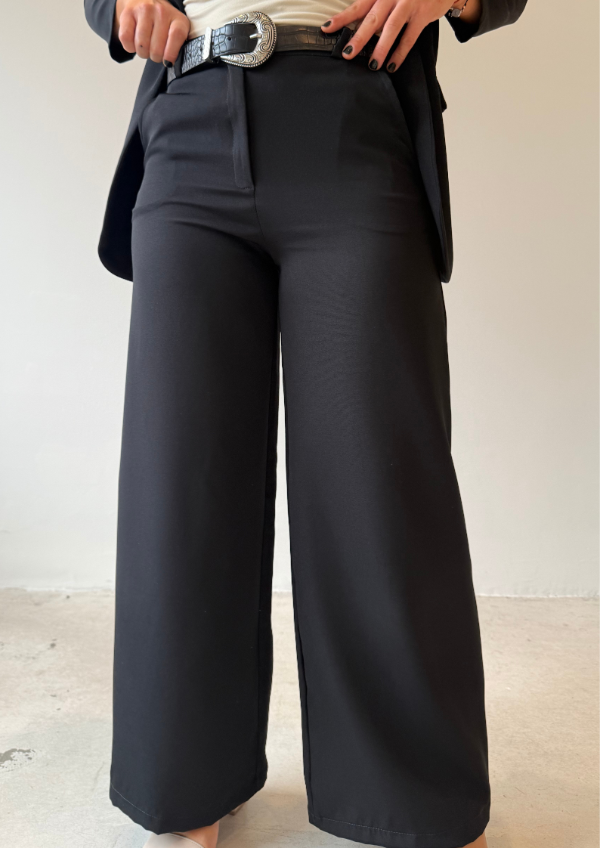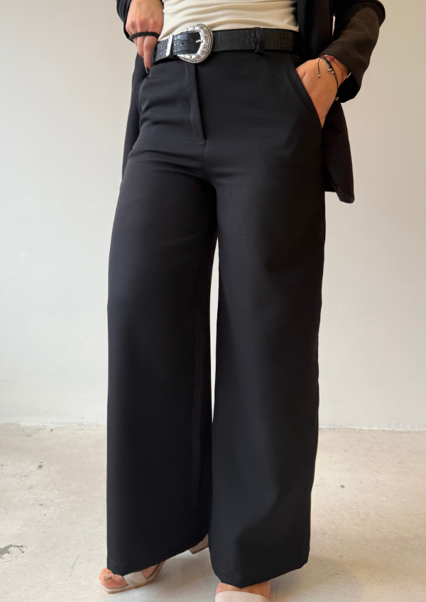 • Pantalón recto sastrero, largo al piso, con bolsillo, boton, cierre y presillas de cinturón. Es tiro alto cuenta con pinzas en la parte trasera para un mejor calce.
