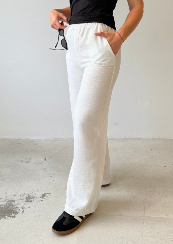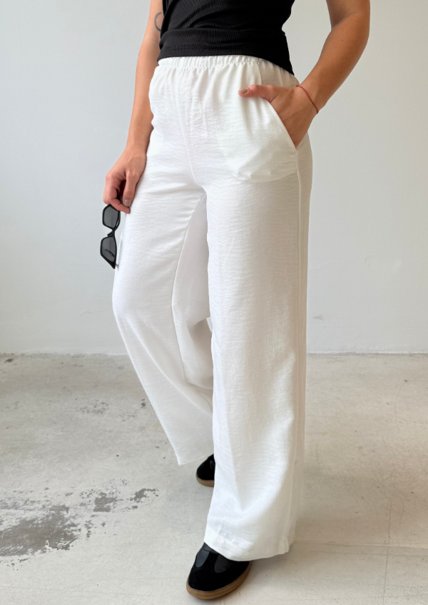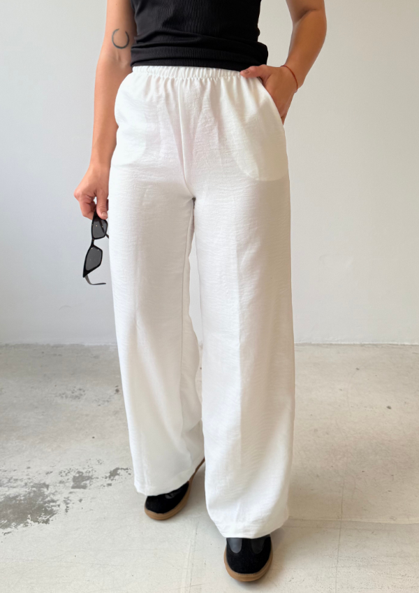 • Pantalón ancho. Cuenta con elástico en todo el contorno de la cintura y bolsillos.