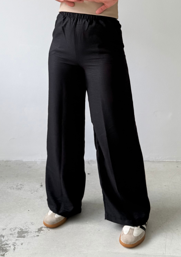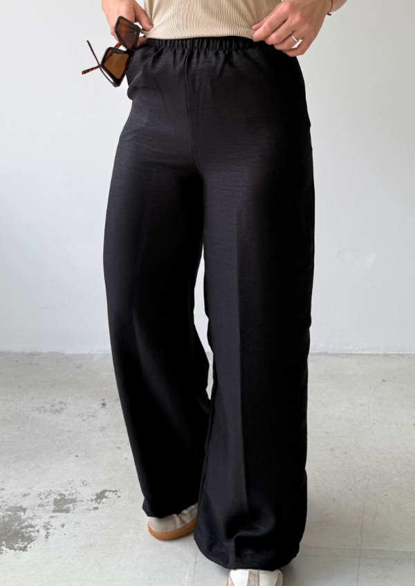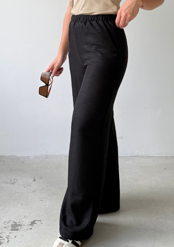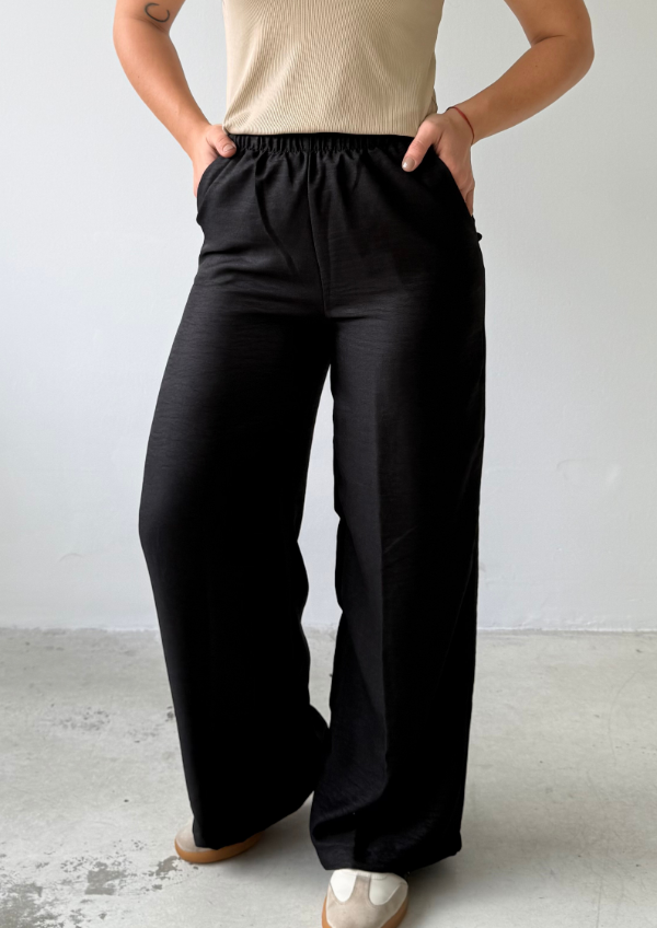 • Pantalón ancho. Cuenta con elástico en todo el contorno de la cintura y bolsillos.