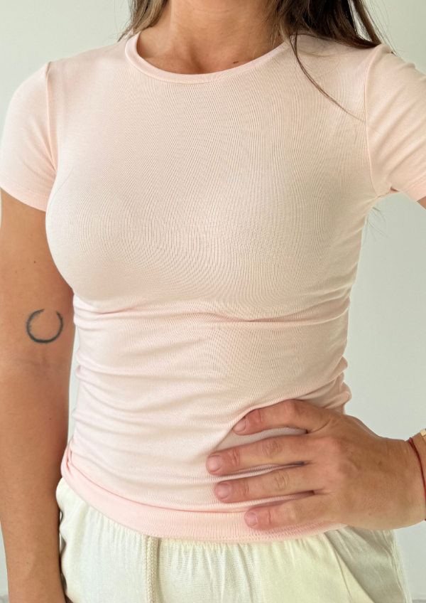 • Remera manga corta, escote redondo cerrado, super elastizada.