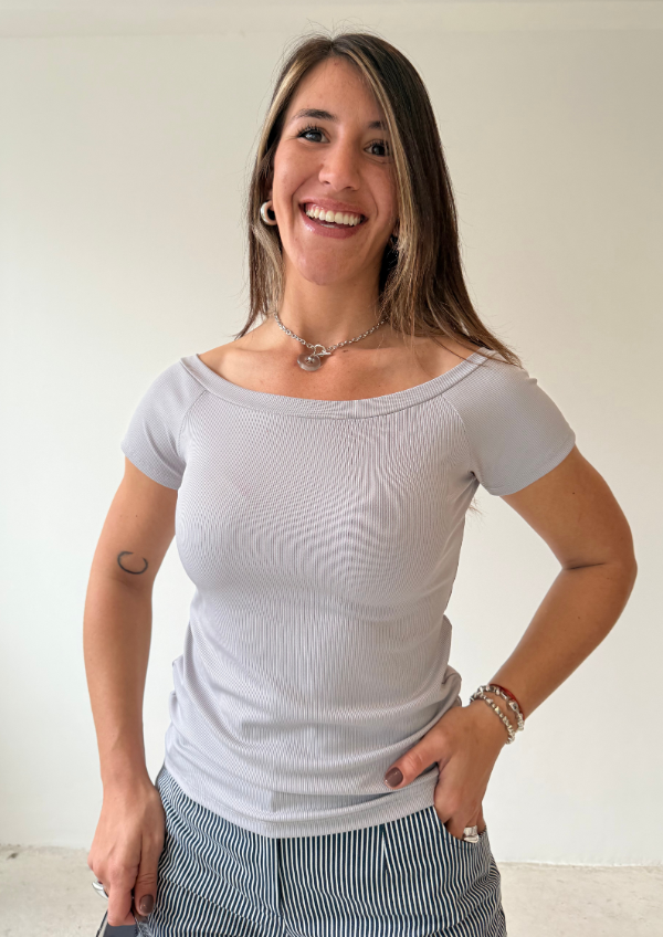 • Remera manga corta. El modelo se puede usar de 2 maneras distintas: con la manga en los hombros, tipo escote paisana. O con las mangas subidas con un escote tipo bote. Super versátil y se adapta a la comodidad de cualquier cuerpo.